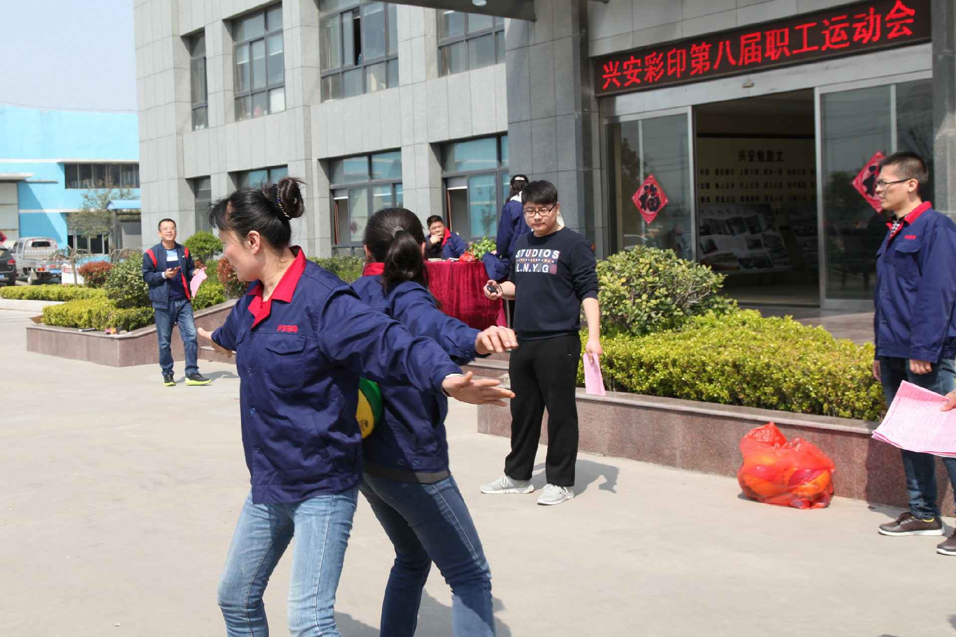 2017年4月2日上午,南京鑫宇文化遗产推广有限公司第八届职工运动会隆重举行,本次运动会共设男女拔河、盲人敲锣、投沙包、抛绣球、心有灵犀、心心相印、摸石过河、穿衣接力、同舟共济、企鹅漫步、仙人指路、踢毽子、踢气球、羽毛球、面部肌肉跳舞及“造反”运动等16大项,参赛人员400多人次,此次运动会以娱乐节目为主开的比较成功,充分体现了兴安大家庭的和谐团结。